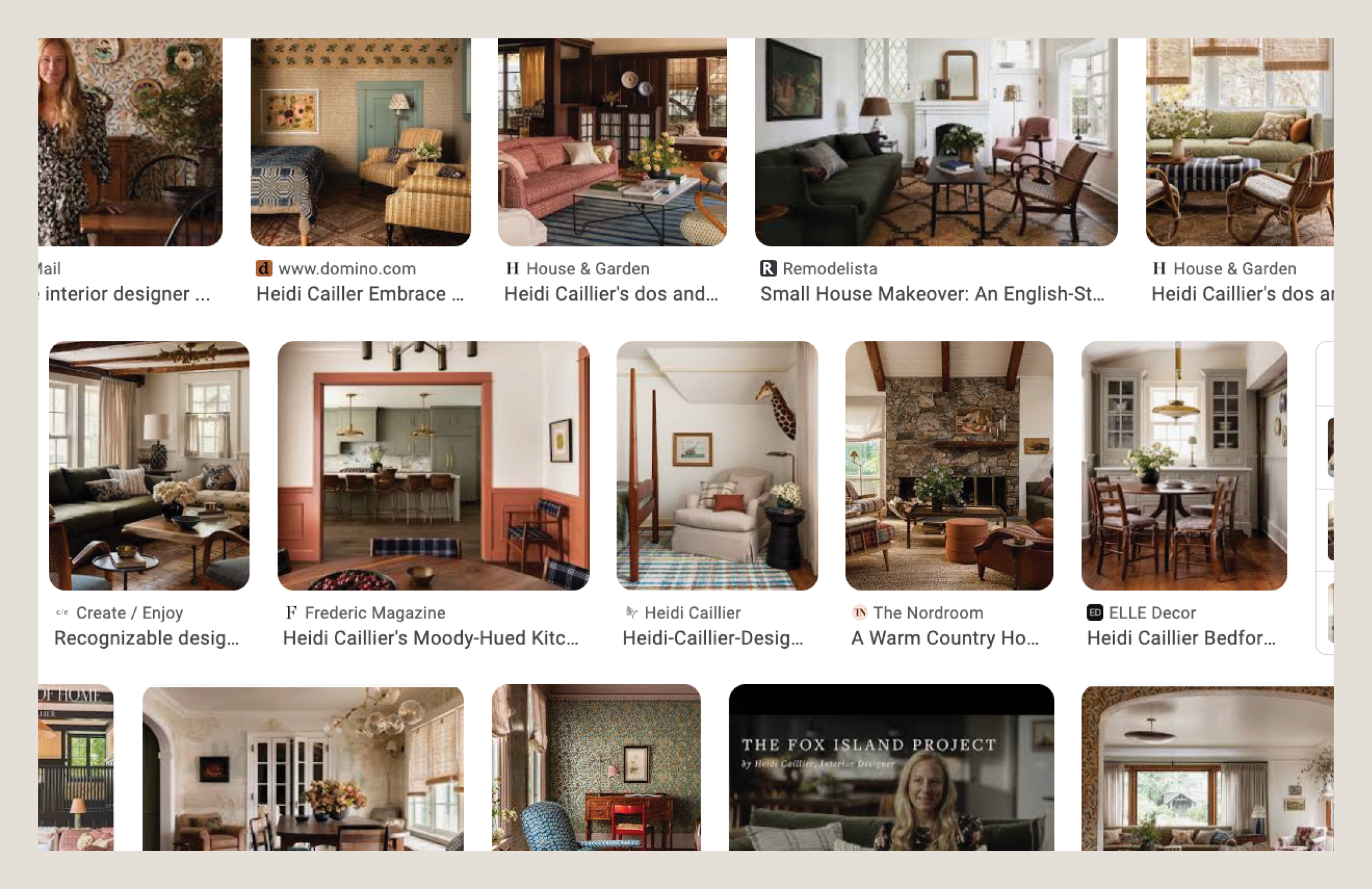 Heidi Caillier’s style is like if a 1900s English countryside manor married a brooding Pacific Northwest cabin and they hired a French art dealer as their decorator. It’s layered. It’s soulful. It’s quiet luxury that actually has books on the shelves and dog hair on the rug.